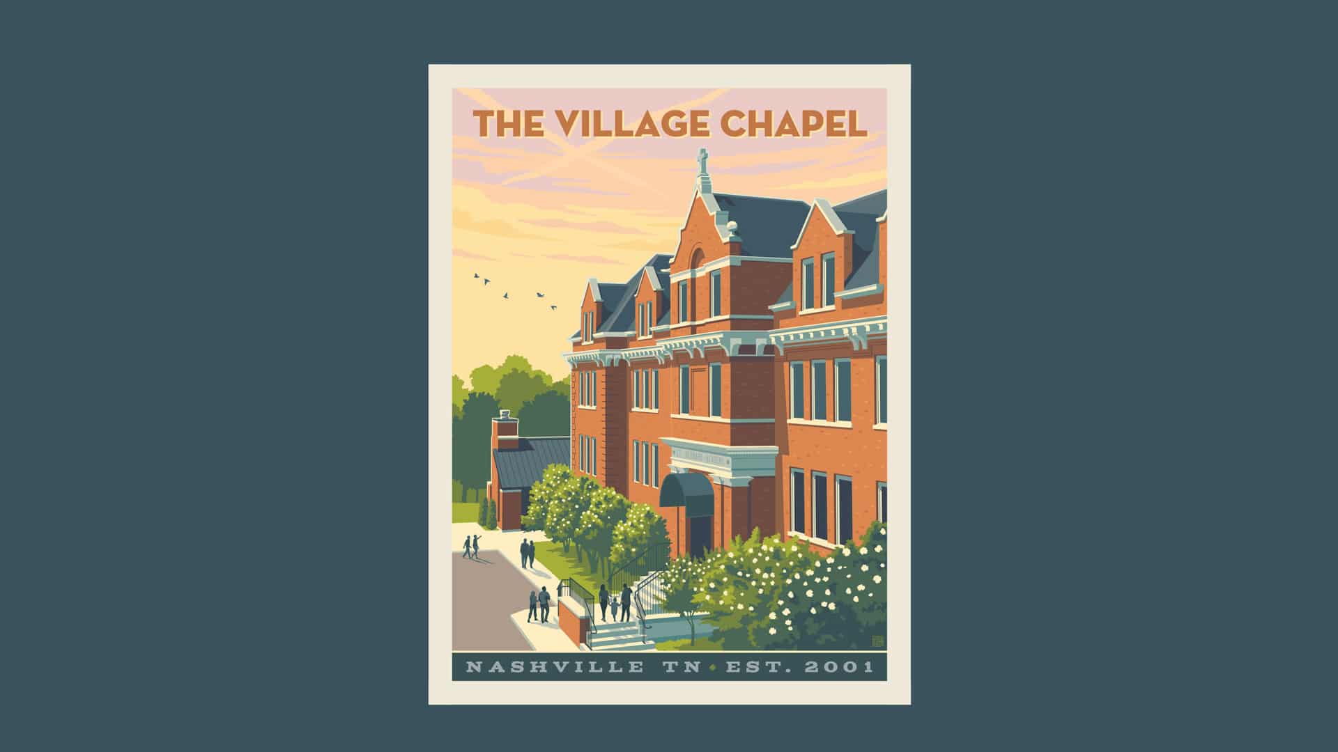 We are thrilled to unveil a custom-commissioned poster by our very own Joel Anderson in commemoration of the 25th anniversary of The Village Chapel! A limited number of 18×24 prints will be available to reserve for $45 to be picked up Sunday, March 1 at the Info Table. We hope having this special piece of art in your home or office will regularly remind you to give thanks for all that the Lord has done in our midst and to pray for what is to come!